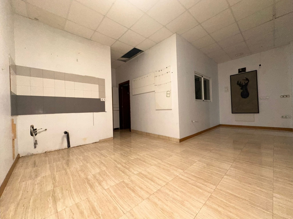 Local comercial diáfano de 94m2, ubicado en la Nucía. Cuenta con salida de humos, un baño con plato de ducha y una habitación utilizada como oficina. En las imágenes se puede observar una separación en el local en dos áreas, aunque se puede dejar totalmente diáfano sin inconveniente. Cuenta con una entrada a través de una puerta a pie y también tiene la puerta de garaje con persiana, perfecta para descargar mercancía, etc.